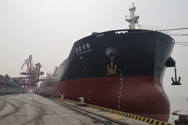 揚州海昌首次完成5萬(wàn)噸級散貨海輪裝船作業(yè)