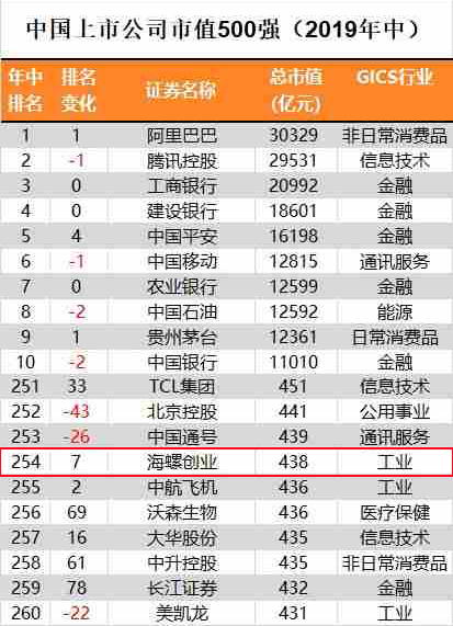 海螺創(chuàng )業(yè)以總市值438億元人民幣再次入圍中國上市公司500強名單,位列254位,排名提升了7位