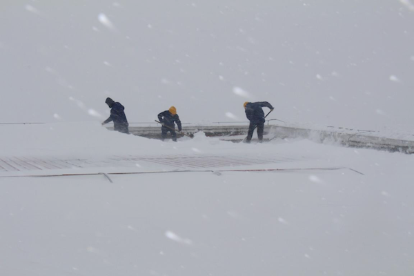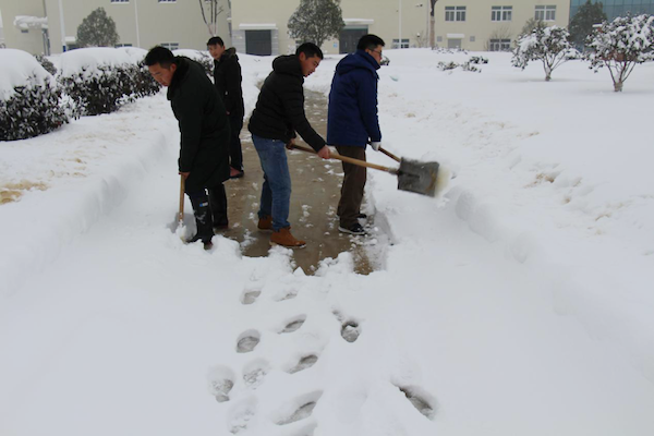 ? ? 1月24日晚一場(chǎng)暴雪如期而至。公司緊急啟動(dòng)防雪預案,25日早上6時(shí),霍邱海創(chuàng )全體員工開(kāi)始對主干道、廠(chǎng)區、垃圾運輸橋、房頂等進(jìn)行積雪突擊清理。