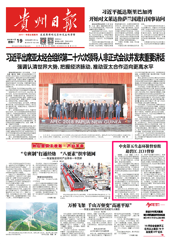 ? ? 2018年11月19日,貴州省電視臺新聞聯(lián)播、貴州日報,對中央第五生態(tài)環(huán)境保護督察組現場(chǎng)督察海螺創(chuàng )業(yè)附屬全資子公司銅仁海創(chuàng )生活垃圾焚燒發(fā)電項目進(jìn)行了深度報道,對該項目予以高度肯定。