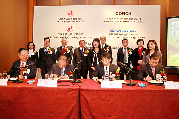 2014年1月7日上午,中國安徽海螺集團公司、中國海螺創(chuàng )業(yè)控股有限公司分別與亞洲水泥股份有限公司、亞洲水泥(中國)控股公司在香港萬(wàn)豪酒店簽署戰略合作協(xié)議。未來(lái)各方將加強在節能環(huán)保、國際化發(fā)展、新型建材及水泥生產(chǎn)技術(shù)、運營(yíng)管理、物流運輸、房地產(chǎn)開(kāi)發(fā)等領(lǐng)域的廣泛合作,共創(chuàng )互贏(yíng)局面。