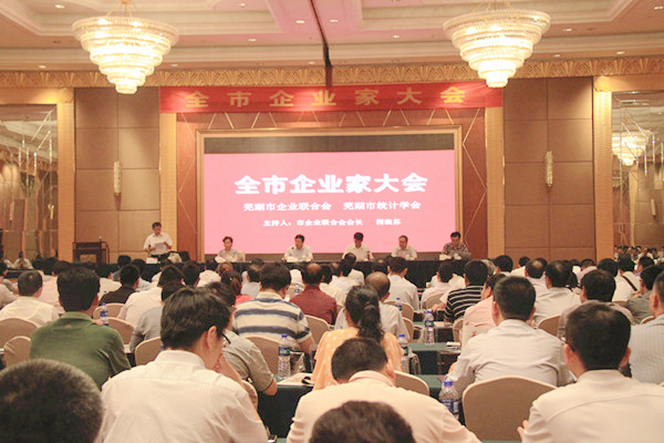 ? ? 2014年6月23日下午,由蕪湖市企業(yè)聯(lián)合會(huì )、蕪湖市統計學(xué)會(huì )聯(lián)合舉辦的蕪湖市全市企業(yè)家大會(huì )在僑鴻酒店隆重舉行。市委書(shū)記、市人大主任高登榜同志、各市政府市直機關(guān)、各縣、區主要負責同志、全市企業(yè)家代表共300余人出席了此次大會(huì )。
