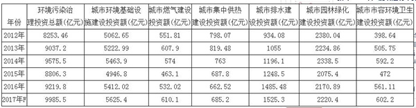 ? ? 近幾年,國內城市建設步伐加快,各類(lèi)投資金額尾部增長(cháng),根據國家統計局數據顯示:2012年國內環(huán)境污染治理投資總額8253.46億元,到2017年預計約9985.5億元;2012年國內城市環(huán)境基礎設施建設投資額5062.65億元,到2017年約5625.4億元;2012年國內城市燃氣建設投資額551.81億元,預計2017年達610.1億元;2012年城市集中供熱建設投資額798.07億元,2017年預計約685.2; 2012年城市排水建設投資額934.08億元,2017年約1525.3億元;2012年國內城市園林綠化建設投資額2380.04億元,2017年約2220.4億元;2012年國內城市市容環(huán)境衛生建設投資額398.64億元,預計2017年達602.2億元。