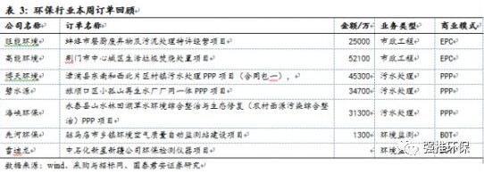 ? ? 三、環(huán)保&公用板塊上周訂單情況