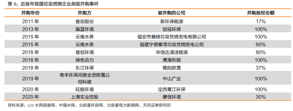 行業(yè)集中度較國外發(fā)達國家仍有差距,未來(lái)有望進(jìn)一步提升。據卡萬(wàn)塔公司總裁2019年10月發(fā)言介紹,卡萬(wàn)塔在美國市場(chǎng)的占有率已接近70%。相比之下,我國垃圾焚燒行業(yè)龍頭企業(yè)市占率仍較低,未來(lái)有望通過(guò)并購整合,繼續擴大市場(chǎng)規模,行業(yè)集中度或將進(jìn)一步提高。