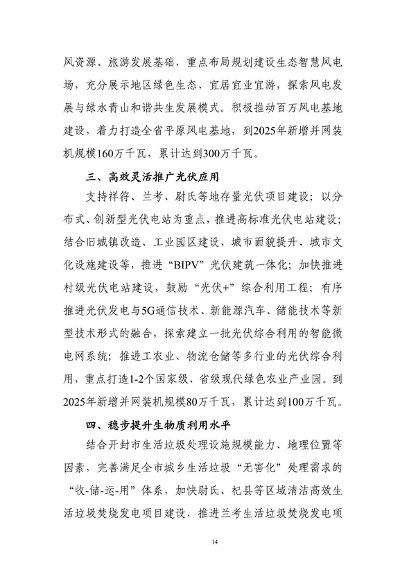 日前,河南開(kāi)封就《開(kāi)封市“十四五”現代能源體系和碳達峰碳中和規劃(征求意見(jiàn)稿)》公開(kāi)征求意見(jiàn),該規劃指出,穩步提升生物質(zhì)利用水平,結合開(kāi)封市生活垃圾處理設施規模能力、地理位置等因素,完善滿(mǎn)足全市城鄉生活垃圾“無(wú)害化”處理需求的“收-儲-運-用”體系,加快尉氏、杞縣等區域清潔高效生活垃圾焚燒發(fā)電項目建設,推進(jìn)蘭考生活垃圾焚燒發(fā)電項目擴建工程,提升城鄉生活垃圾能源化利用水平。統籌資源分布、生態(tài)環(huán)境要求,在祥符區、尉氏縣、杞縣等縣布 局建設農林生物質(zhì)熱電聯(lián)產(chǎn)項目,推進(jìn)生物質(zhì)資源資源化利用;建立生物質(zhì)制氣政策支持和管理體系,在蘭考、杞縣等區域謀劃建設一批農林生物質(zhì)制氣示范項目,探索生物天然氣生態(tài)循環(huán)經(jīng)濟新業(yè)態(tài)。力爭“十四五”期間新增生物質(zhì)發(fā)電裝機11萬(wàn)千瓦。詳情如下: