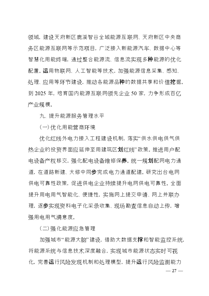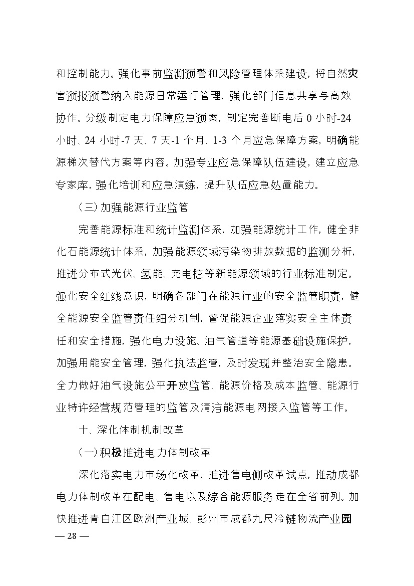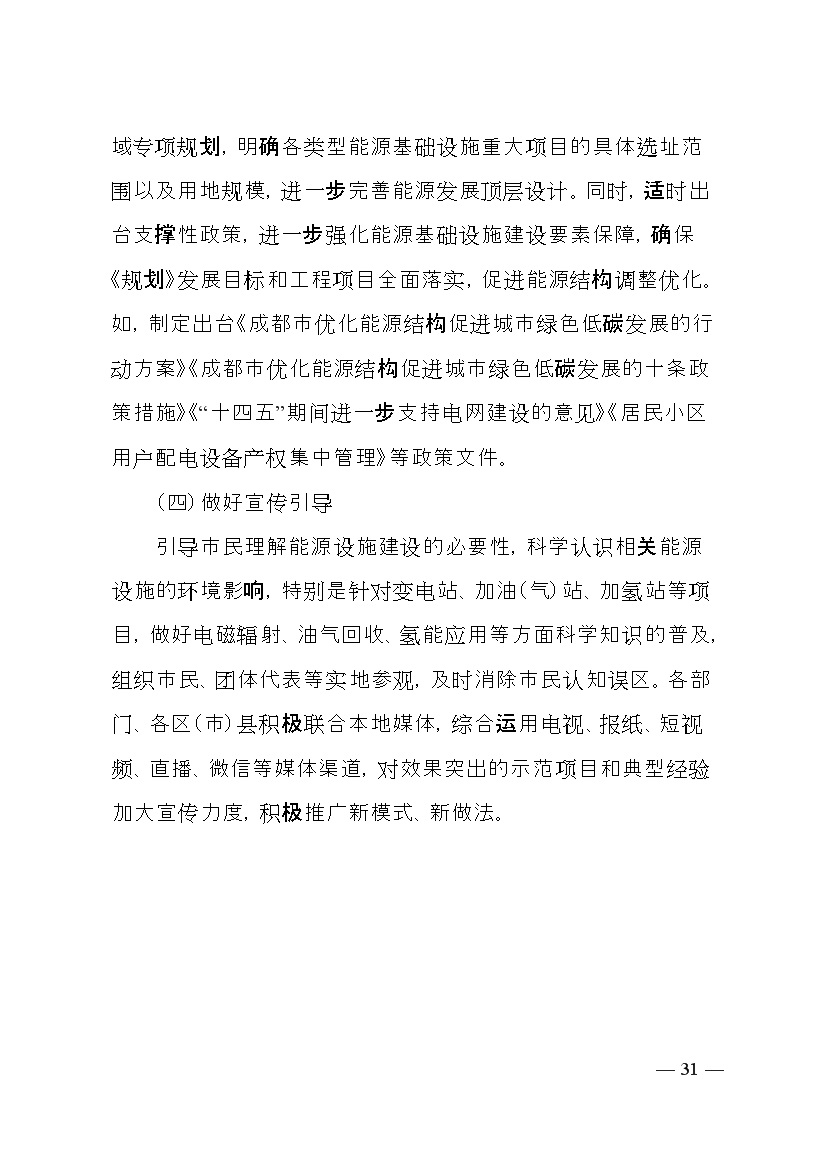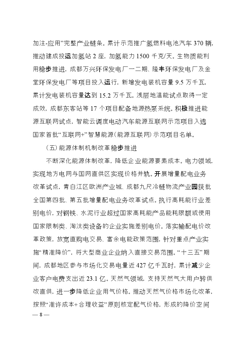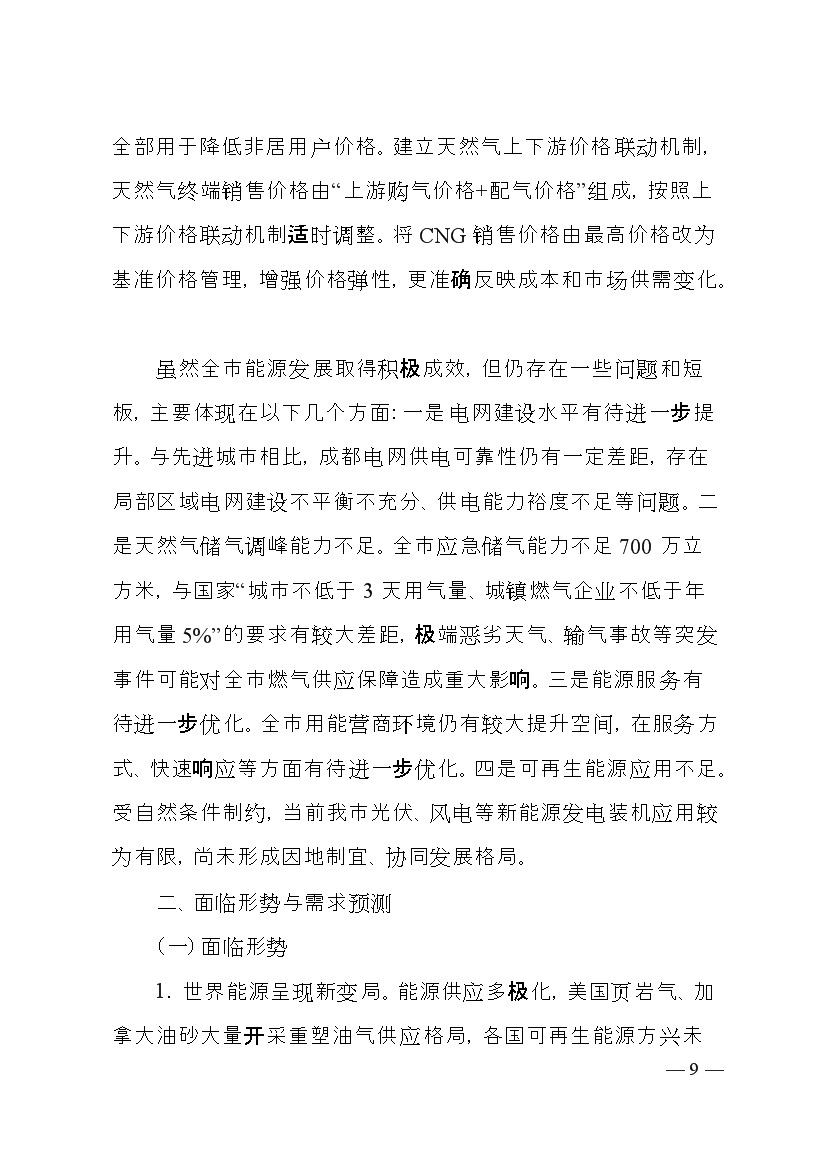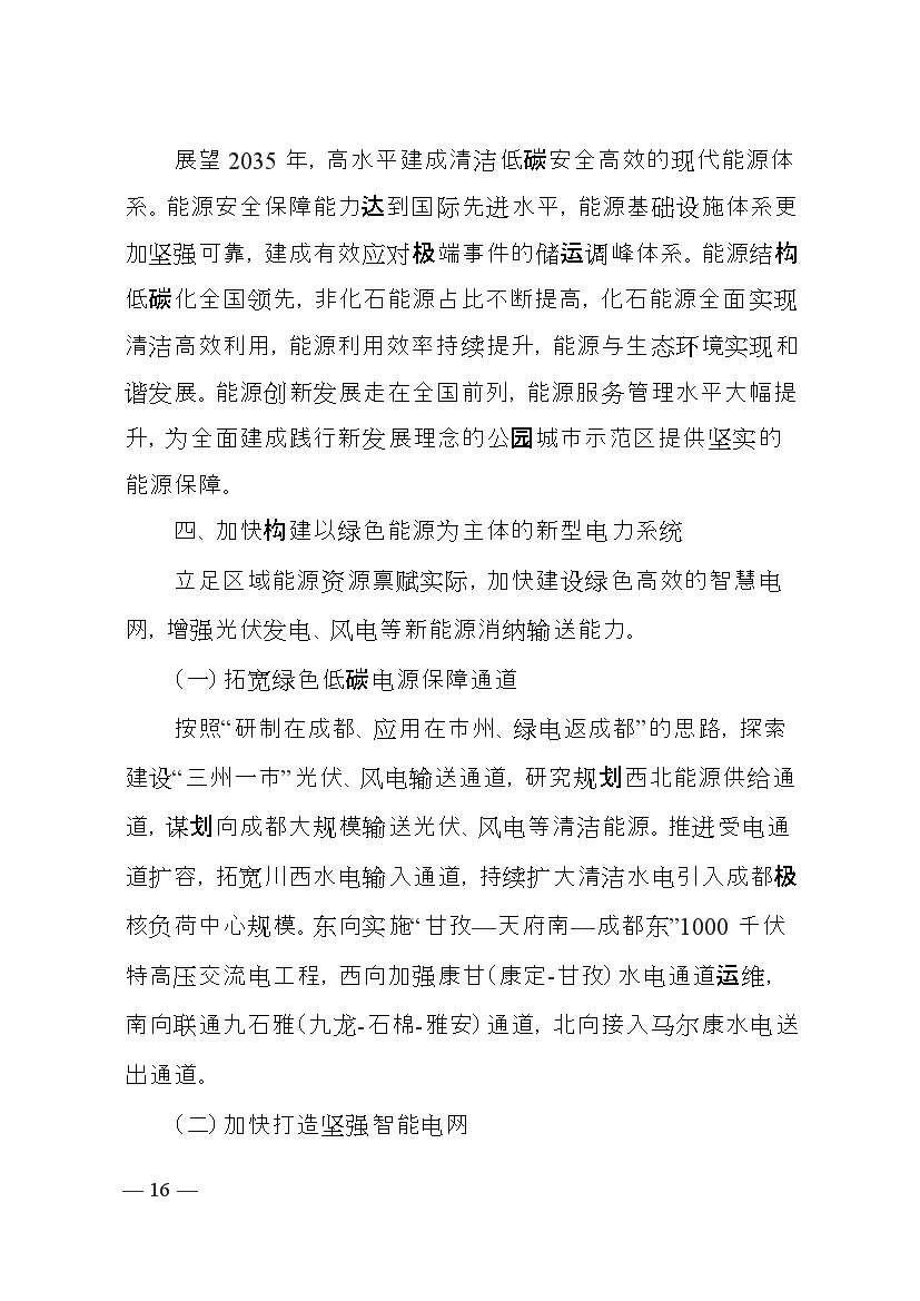 成都市人民政府印發(fā)《成都市“十四五”能源發(fā)展規劃》,明確了以創(chuàng )新發(fā)展為動(dòng)力,以強化保障能力為抓手,加快構建新型電力系統,持續推進(jìn)清潔能源替代,優(yōu)化能源消費結構,全力提升能源利用效率發(fā)展思路。并提出總量控制目標、消費結構目標、能源安全保障、等能源節約目標、基礎設施建設等發(fā)展目標。