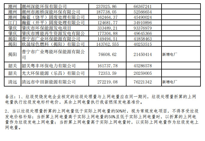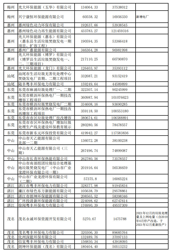 廣東省發(fā)展改革委關(guān)于公布有關(guān)垃圾焚燒發(fā)電企業(yè)2021年下半年垃圾處理量及相關(guān)電量的通知