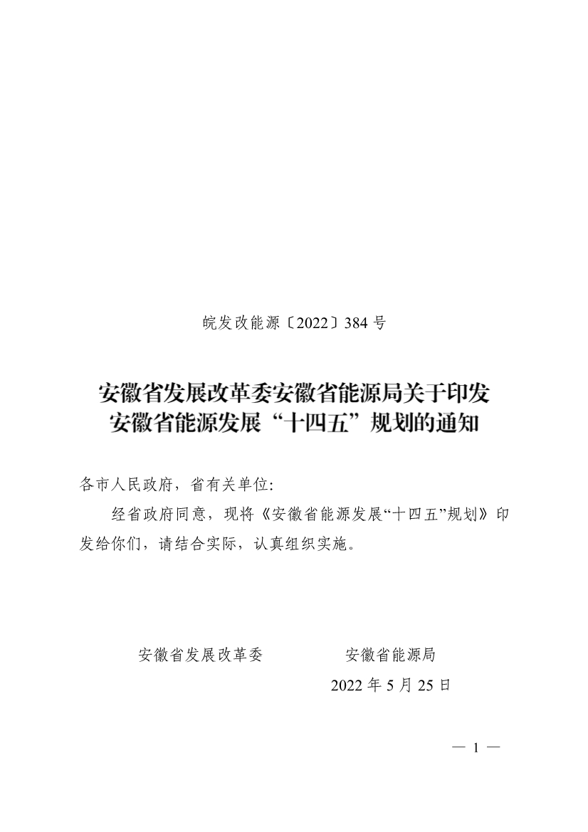 經(jīng)省政府同意,現將《安徽省能源發(fā)展“十四五”規劃》印發(fā)給你們,請結合實(shí)際,認真組織實(shí)施。