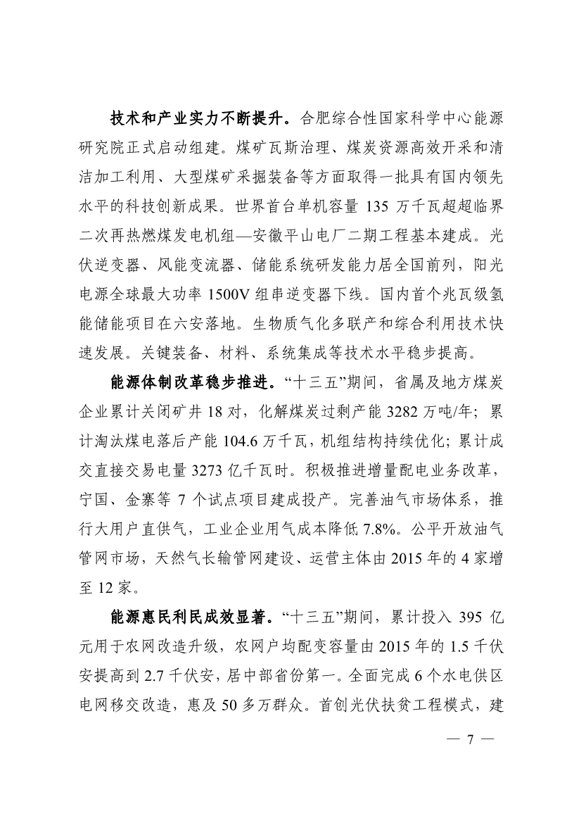 安徽省發(fā)展改革委 安徽省能源局關(guān)于印發(fā)安徽省能源發(fā)展“十四五”規劃的通知