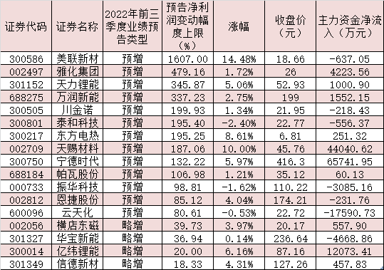 ????表:已披露2022年前三季度業(yè)績(jì)預告且預喜的鋰電池公司