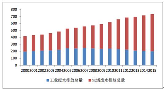 ? ? 工業(yè)三廢排放量仍居高位。工業(yè)廢氣排放總量逐年上升,排放量占比在85%以上;廢水排放自2008年起呈現下降趨勢,占比亦低于生活污水排放量,化工、造紙、紡織、煤炭、食品加工是工業(yè)廢水排放的前五大行業(yè);固廢排放自2011年起趨緩,貯存量雖逐漸下降,但依然處于較高位置,2015年工業(yè)固廢貯存量占比依然達到17.9%。