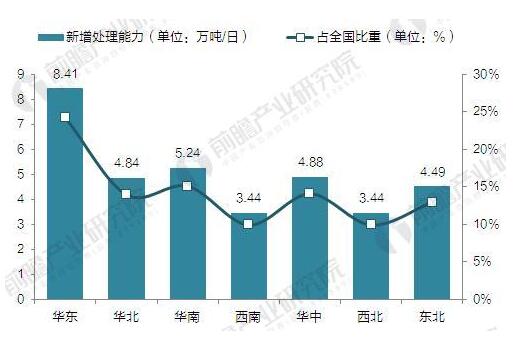 ? ? 具體來(lái)看,廣東省新增生活垃圾無(wú)害化處理能力增長(cháng)最多,而中東部沿海經(jīng)濟發(fā)達省份依然是生活垃圾無(wú)害化處理設施建設的核心地區。其中,華東六省市生活垃圾無(wú)害化處理能力總規模達到32.04萬(wàn)噸/日,占全國的比重為34.34%,新增處理能力達8.07萬(wàn)噸/日,占全國新增處理能力比重為27.80%,均排在各區域首位。