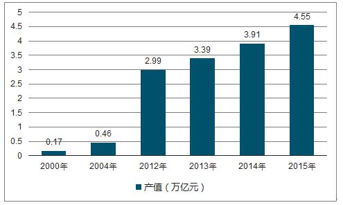 2000-2015年中國環(huán)保行業(yè)產(chǎn)值情況