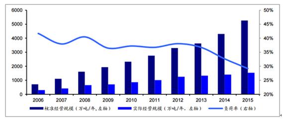 ? ? 根據《2016年全國大中城市固體廢棄物污染環(huán)境防治年報》截止2015年底,全國各?。▍^、市)頒發(fā)的危險廢物(含醫療廢物)經(jīng)營(yíng)許可證2034份,全國危廢廢物經(jīng)營(yíng)單位核準經(jīng)營(yíng)規模達到5263萬(wàn)噸/年,從實(shí)際利用處置情況來(lái)看(持有危廢經(jīng)營(yíng)許可證的單位收集、利用、貯存及處置危險廢物的實(shí)際數量,不包括單位自行利用處置的量),2015年危險廢物實(shí)際經(jīng)營(yíng)規模為1536萬(wàn)噸,為核準利用規模的29.18%。危廢許可證處理資質(zhì)和市場(chǎng)需求的錯配導致資質(zhì)的整體負荷率低下。