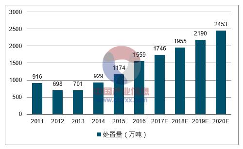 2011-2020年中國危廢處置量預測