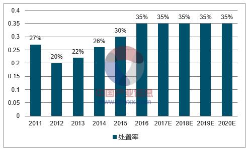 2011-2020年中國危廢處置率預測