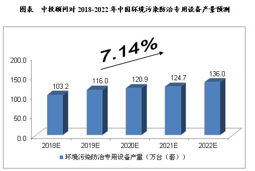 ? ? 綜合以上因素,我們預計,2018年我國環(huán)境污染防治專(zhuān)用設備產(chǎn)量將達到103.2萬(wàn)臺(套),未來(lái)五年(2018-2022)年均復合增長(cháng)率約為7.14%,2022年將達到136.0萬(wàn)臺(套)。