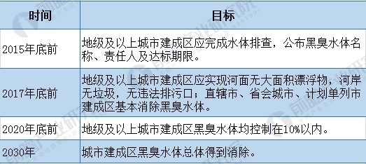? ? 而《水污染防治行動(dòng)計劃》明確提出,黑臭水體治理目標要求:到2020年,地級及以上城市建成區黑臭水體均控制在10%以?xún)?到2030年,城市建成區黑臭水體總體得到消除。