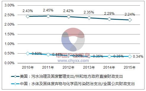 財政支出角度:中國水體及固廢治理支出占比較低