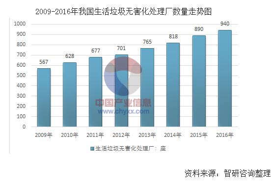 ? ? 2016年年末全國城市共有生活垃圾無(wú)害化處理場(chǎng)(廠(chǎng))940座,比上年增加50座,日處理能力62.1萬(wàn)噸,處理量1.97億噸,城市生活垃圾無(wú)害化處理率96.62%,比上年增加2.52個(gè)百分點(diǎn)。