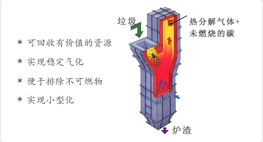 CKK系統工藝流程:生活垃圾用密封運輸車(chē)運送進(jìn)廠(chǎng),稱(chēng)重后卸入垃圾坑,通過(guò)破碎、攪拌進(jìn)行均化,再喂入氣化爐內焚燒。氣化爐內垃圾與蓄熱介質(zhì)流化砂接觸,一部分垃圾燃燒,產(chǎn)生熱量保持蓄熱介質(zhì)的溫度,使垃圾可以持續氣化;另一部分垃圾氣化,生成可燃氣體送到水泥窯系統中無(wú)害化燃燒。氣化爐內的不燃物灰渣從爐底排出,分離出鐵、鋁金屬后,最終剩下的灰渣用作水泥生產(chǎn)的原料。垃圾坑滲出的垃圾滲濾液經(jīng)過(guò)濾后,送到氣化爐內高溫氧化,完全分解有機成分,實(shí)現無(wú)害化。